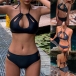 Sexy Backless Solid Color Hollow Out Halter Bikini Set