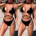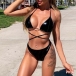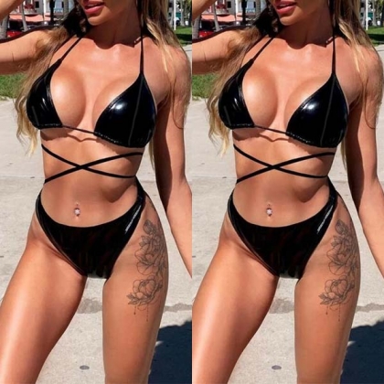 When invited to a bikini party,this bikini set can make you be the sexiest bikini girl! Solid color style,including a backless bikini top and a low-waist bikini bottom,the lace-up design will make it look sexy and flirty. A good choice for your beach days.