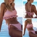 When the summer season hits,you can head to the seaside with this bikini set to flaunt off your seductive curve. Solid color style,the backless and ruffle design make it look so sexy and flirty. Enjoy your beach days with this bikini set!