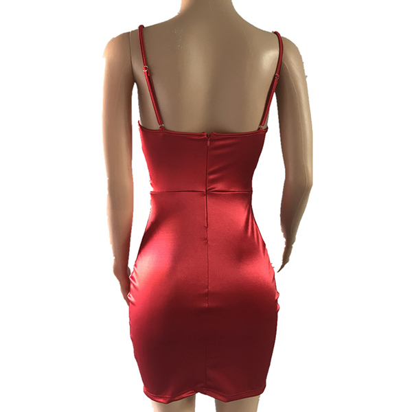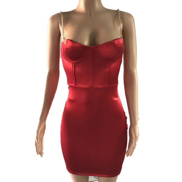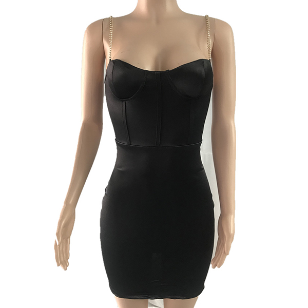 Sexy Backless Solid Color Slim Fit Chain Sling Dress