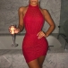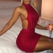 Sexy Backless Solid Color Slim Fit Halter Dress