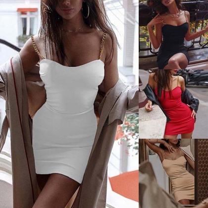 Sexy Backless Solid Color Slim Fit Sling Dress