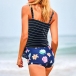 Sexy Backless Striped Sling Top + Printed Shorts Swimsuit Set