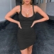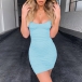 Sexy Backless U-neck Sleeveless Solid Color Slim Fit Dress