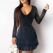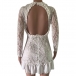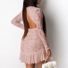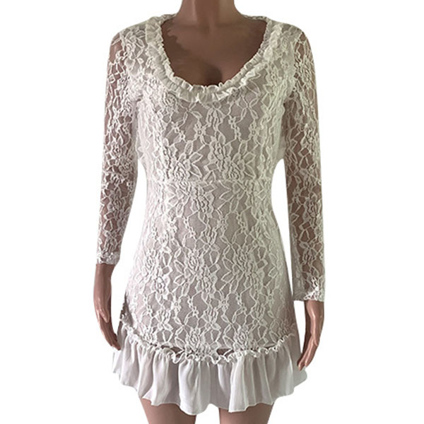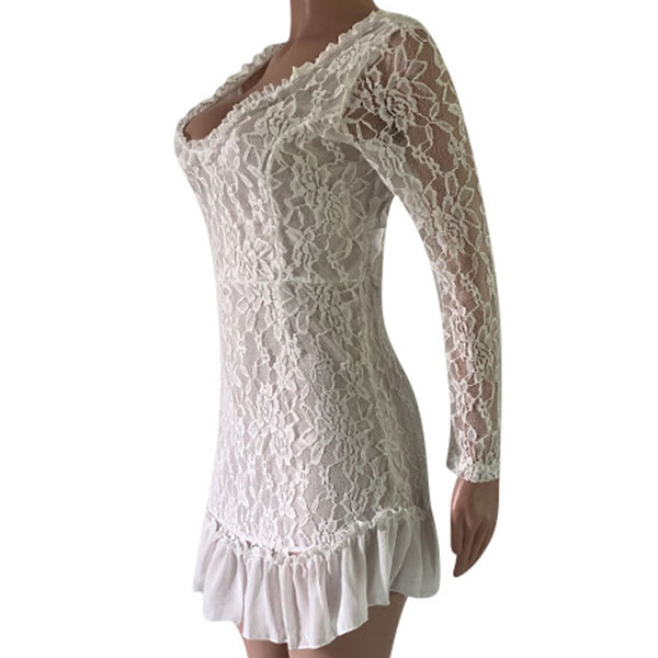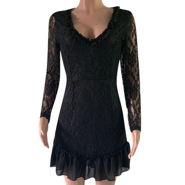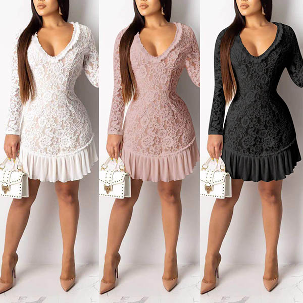 It is an easy thing to exude your sexy and feminine vibes through this lace dress! The backless,v-neck and chiffon spliced ruffle hem design make this piece look so sexy and alluring. When invited to a dinner date or cocktail party,you can just slip into this dress to arouse more attention.