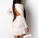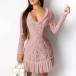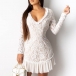Sexy Backless V-neck Chiffon Spliced Ruffle Hem Lace Dress(It falls large)