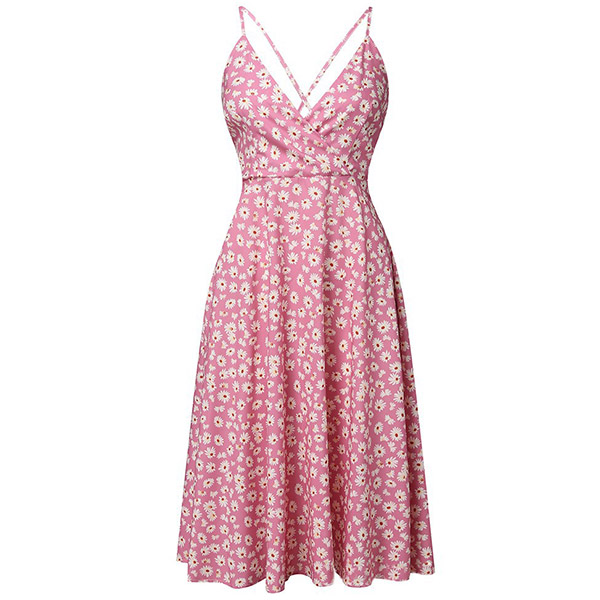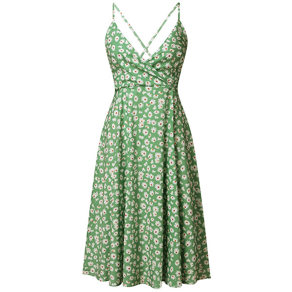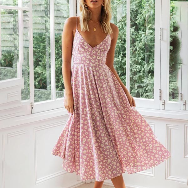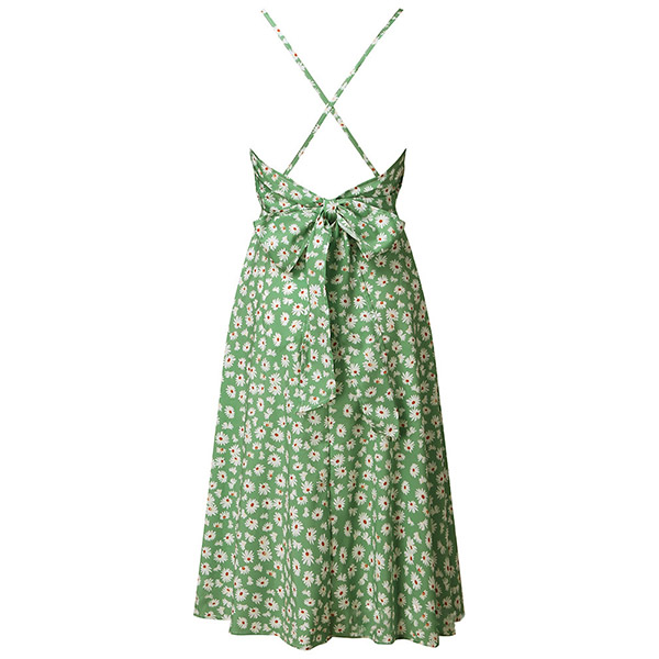 Sexy Backless V-neck Daisy Printed Sling Dress