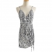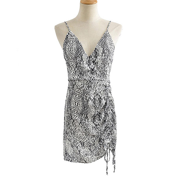 Sexy Backless V-neck Drawstring Hem Serpentine Printed Sling Dress