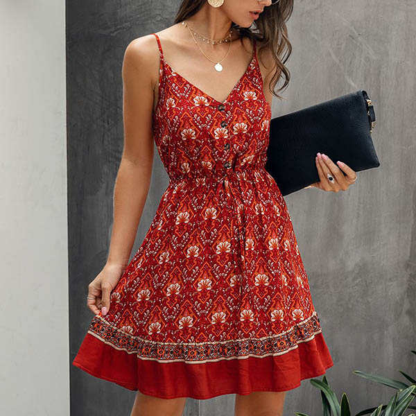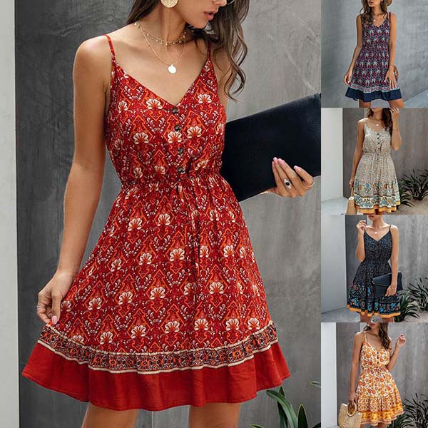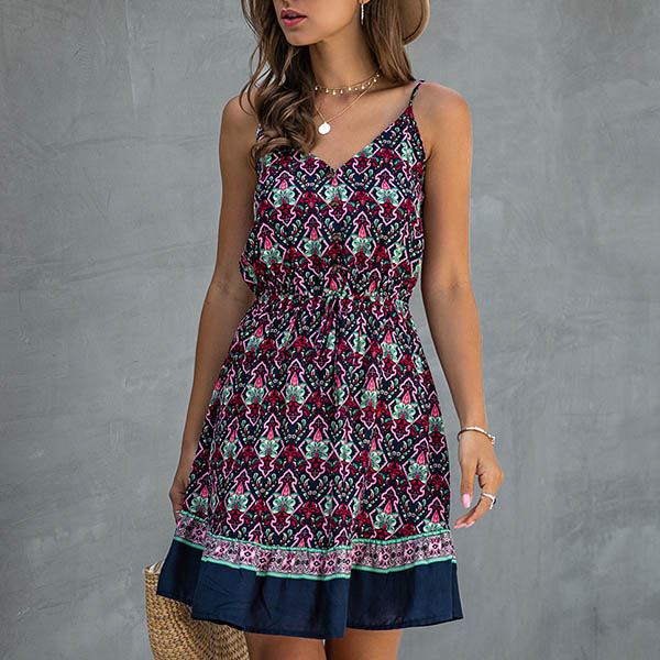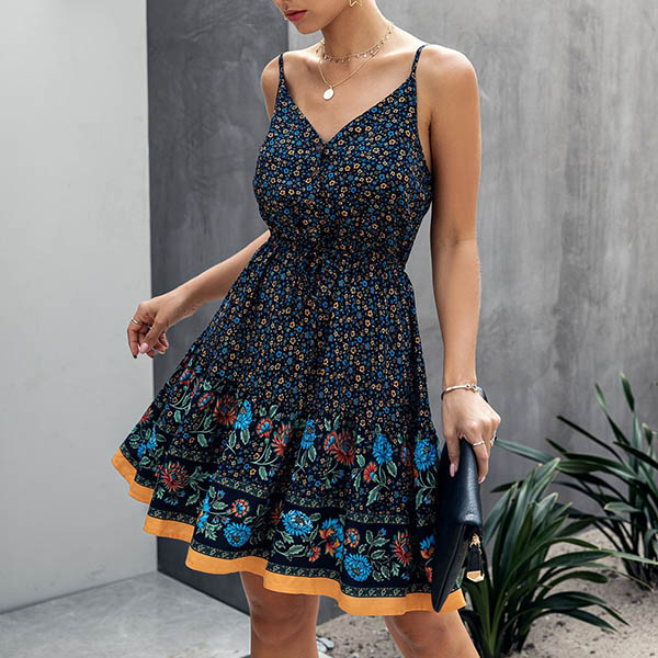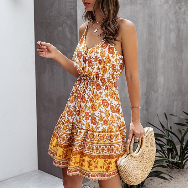 Greet the sun-soaked summer days with a relaxed printed dress such as this creation. It features vibrant floral print details,with backless,v-neck and elastic waist,this sling dress can make you look sassy and flirty. For your beach days and tropical getaways,this dress can easily arouse your attention.