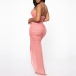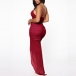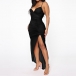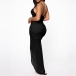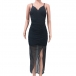 Sexy Backless V-neck Gauze Spliced Slit Hem Sling Dress