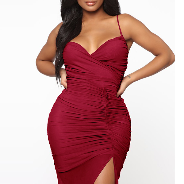 When invited to a cocktail party,you can trust in this dress to help you gain more compliment. Sling style,its alluring design details like backless,v-neck and gauze spliced slit hem design make this piece look so sexy and seductive. So why not save one for the parties and gatherings?