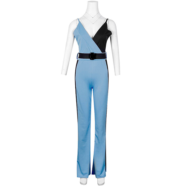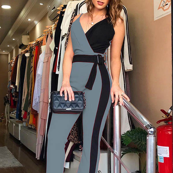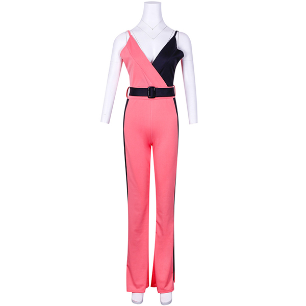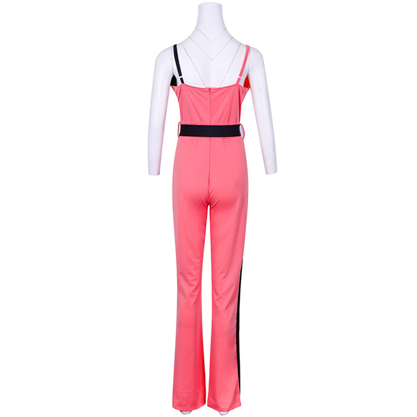 Sexy Backless V-neck High Waist Contrast Color Sling Jumpsuit