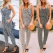 Your summer style can have a boost when you dress yourself up with this jumpsuit! The leopard printed details make it look so eye-catching,while the sleeveless styling and v-neck design will offer you a sexy and flirty look. For your weekend out with your friends,you can choose this piece to win their envious eyes.