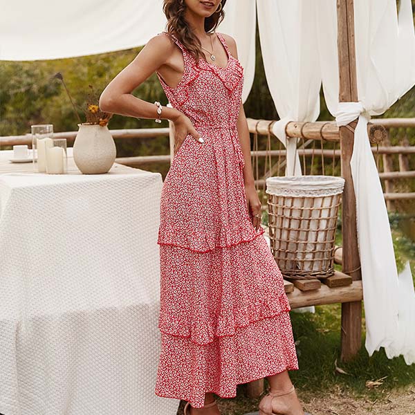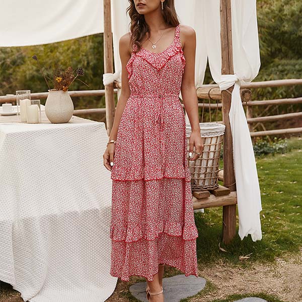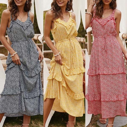 When the summer season hits,this dreamy and relaxed printed dress can easily strike your mind. Sling style,with backless and v-neck design,this dress can make you look flirty and beautiful. No matter for your beach days or weekend trips,this dress can express your beauty and femininity!