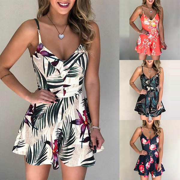 Wanna try a different style? Then make your eyes focused on this romper. Sling style,with backless,v-neck and high waist design,this printed romper not only can make you look sexy and flirty,but also can showcase your slender figure. Perfect fit for these sun-soaked summer days.