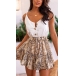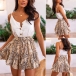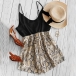 Sexy Backless V-neck High Waist Printed Spliced Hem Sling Romper