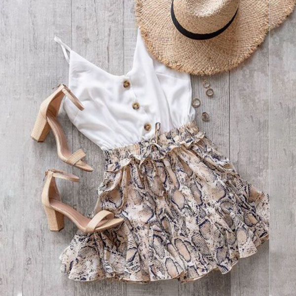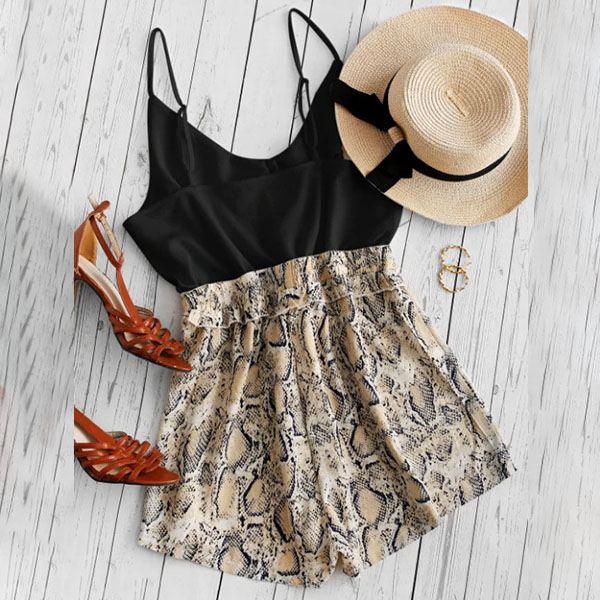 If you're in search for a piece that can easily upgrade your style,then look no further than this romper! Sling style,with backless,v-neck and printed spliced hem design,this piece n showcase your slender figure as well as exude your feminine side. Your perfect choice in these summer days. So why not take interest in it?