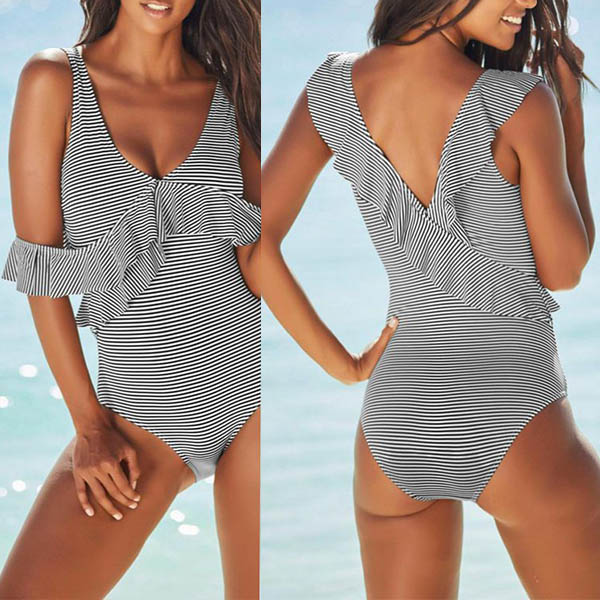 Enjoy your beach days and swimming time with this one-piece swimsuit. Its backless,v-neck and ruffle design make this piece look so sexy and flirty. Your slender figure also can be portrayed in this swimsuit. So why not buy one?