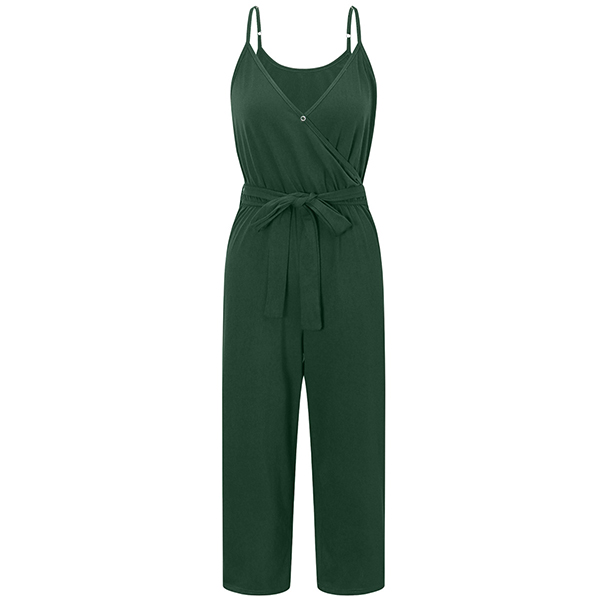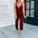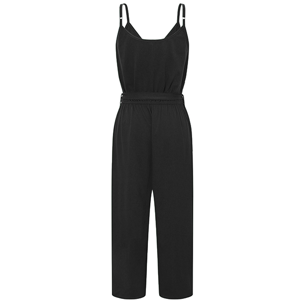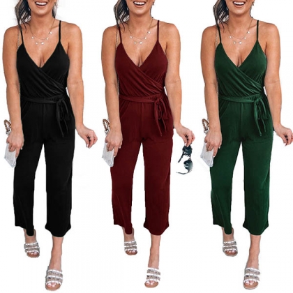 Sexy Backless V-neck High Waist Solid Color Sling Jumpsuit