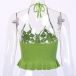 When head to the seaside,this crop top can give you a sexy and charming beach look. Halter style,