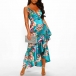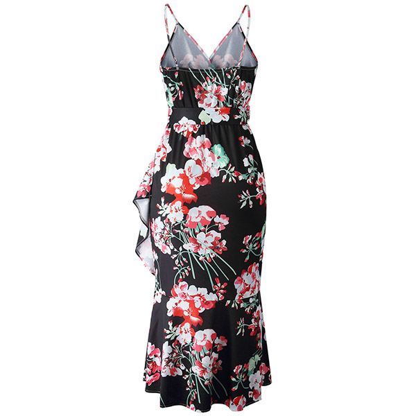 Sexy Backless V-neck Irregular Hem Printed Sling Dress