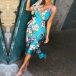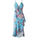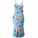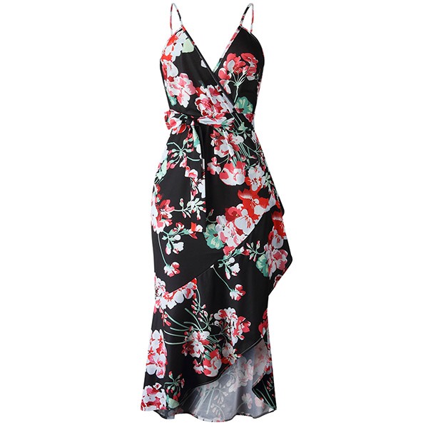 Exhibit your incredible style sense with this beautiful dress. Its colorful and vibrant printed details can help you win more eyes. Sling style,with backless,v-neck and an irregular hem design,this piece is sure to express your beautiful and feminine side.