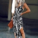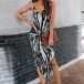 Sexy Backless V-neck Irregular Hem Printed Sling Dress