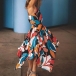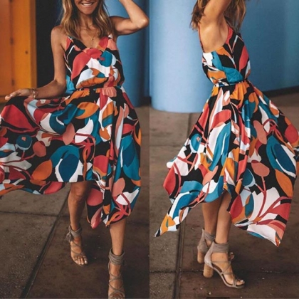 Sexy Backless V-neck Irregular Hem Printed Sling Dress