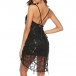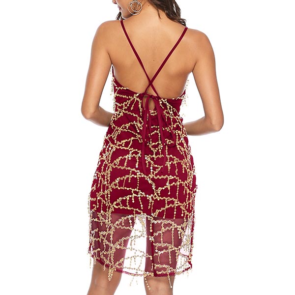 Sexy Backless V-neck Irregular Hem Sequin Spliced Sling Dress