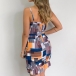 Sexy Backless V-neck Irregular Ruffle Hem Printed Sling Dress