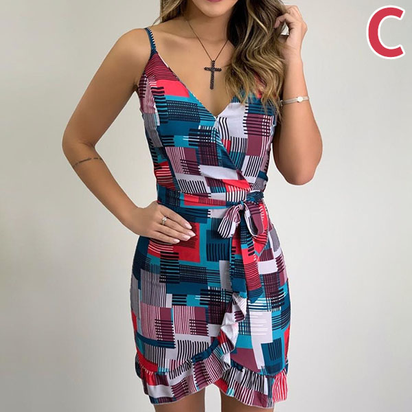Your sexy and charming summer style can have a full display in this dress. Sling style,with backless,v-neck and an irregular ruffle hem design,sexy and flirty. The colorful printed details will make this piece look more eye-catching. So why not add it to your summer wardrobe ensemble?