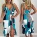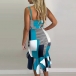 Sexy Backless V-neck Irregular Ruffle Hem Sling Printed Dress