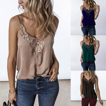 To greet the arrival of the summer days,your wardrobe calls for such a cozy yet sexy top. Its feminine design details like backless,v-neck and lace spliced design make this sling top look so sexy. Try to match with your shorts to have a cool and wonderful day!