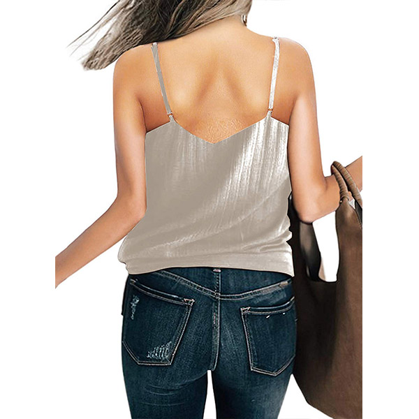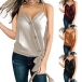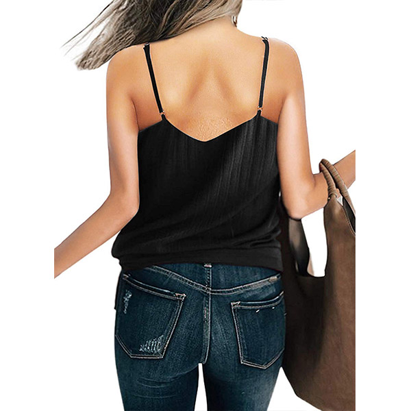 Sexy Backless V-neck Lace-up Hem Solid Color Sling Top