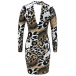Sexy Backless V-neck Leopard Printed Tight Dress