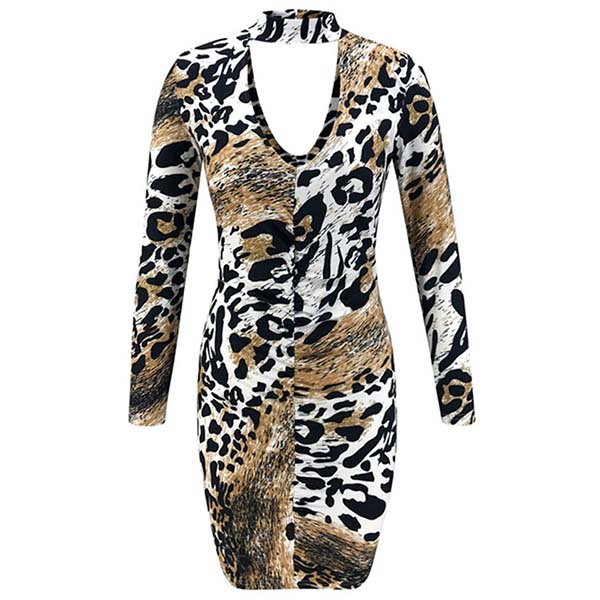 You are sure to be the focus when you don this sexy and alluring dress. The leopard printed details make this piece look so eye-catching,while the backless and v-neck design can make you look sexier. Its tight silhouette design can highlight your seductive curve. Once you slip into this little stunner,you can arouse a splash.