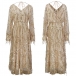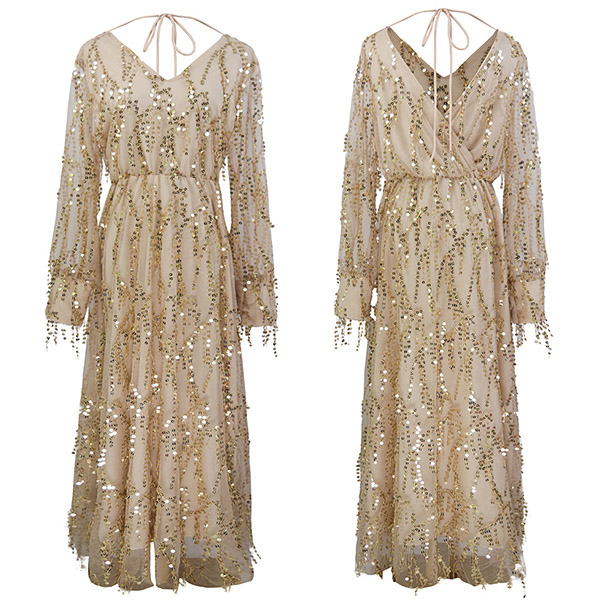 Sexy Backless V-neck Long SleeveSequin Spliced Tassel Dress