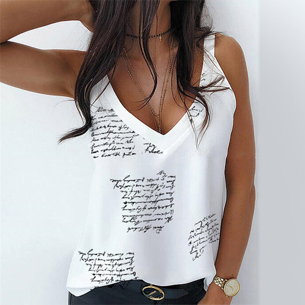 Sexig rygglös V-ringad mönstrad Sling Loose Topp