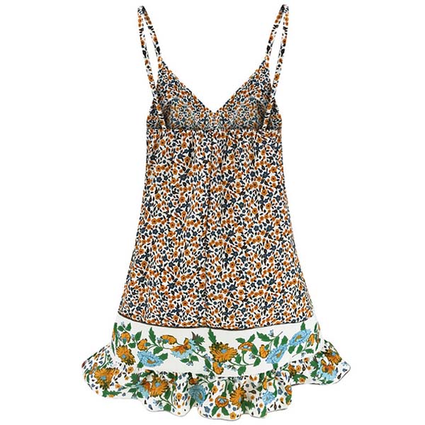 Sexy Backless V-neck Ruffle Hem Printed Sling Dress