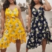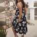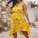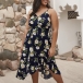 Sexy Backless V-neck Ruffle Hem Sling Printed Dress