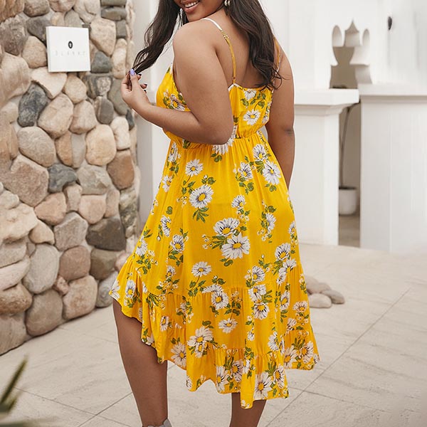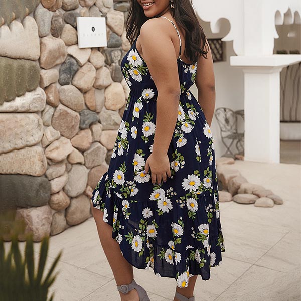 Make your summer wardrobe more complete by adding this dress. Its vibrant floral print details make this piece look so eye-catching. Sling style,with backless,v-neck and ruffle hem design,this piece knows how to exude your flirty and feminine vibes. Start your wonderful day from this beautiful dress!