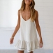 Sexy Backless V-neck Ruffle Hem Solid Color Sling Dress