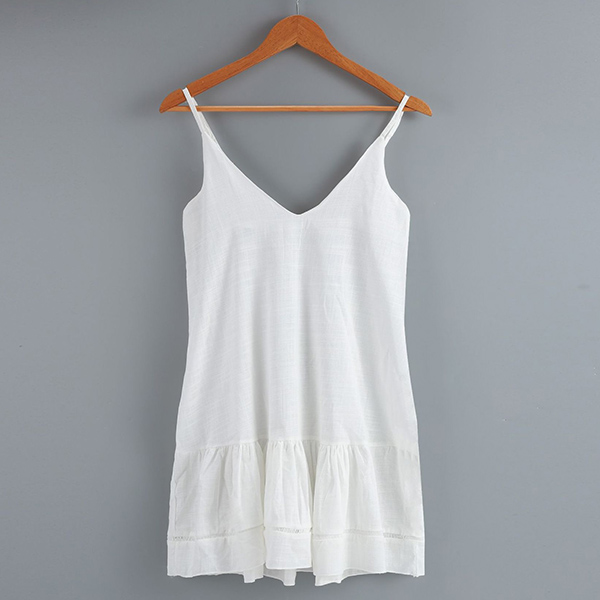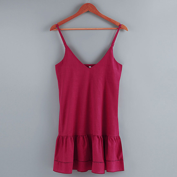 To greet the sun-soaked weekends,you need such a cozy and sexy dress. Sling style,with backless,v-neck and ruffle design,this dress definitely can make you look beautiful and charming. We think matching with a sweet straw hat would make you look more perfect!