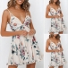 Sexy Backless V-neck Ruffle Printed Sling Dress