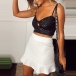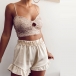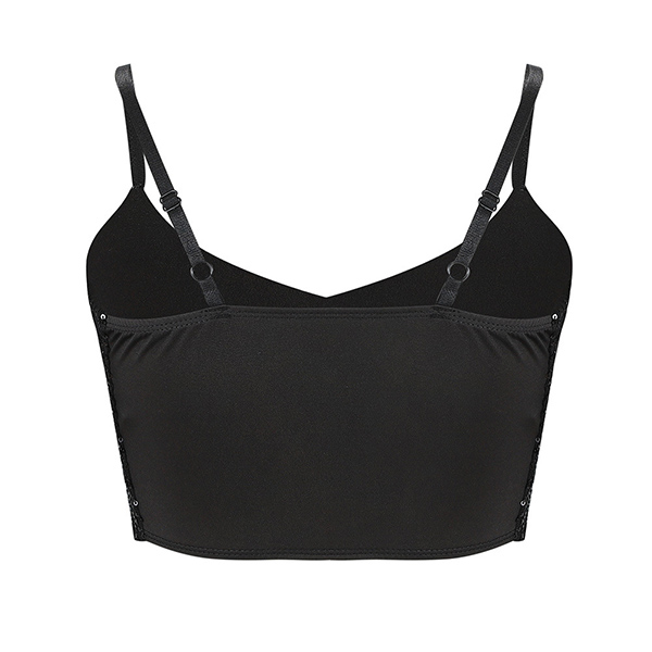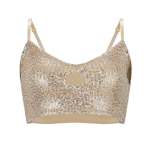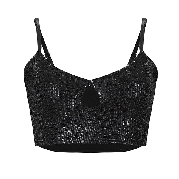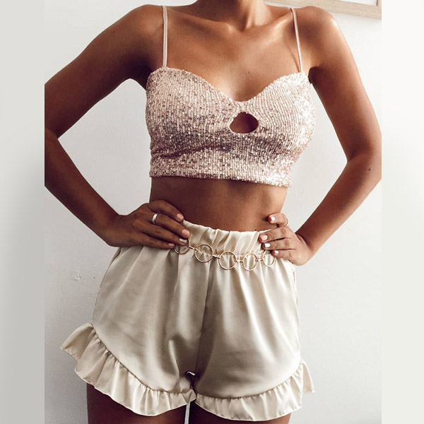 Not only can expose your charming skin,but also can flaunt off your seductive waist,that's why we love this crop top. Sling style,with backless and v-neck design,sexy yet alluring. The sequin details make it look more eye-catching and stunning. We suggest you matching with a high waist shorts to have a flirty look!