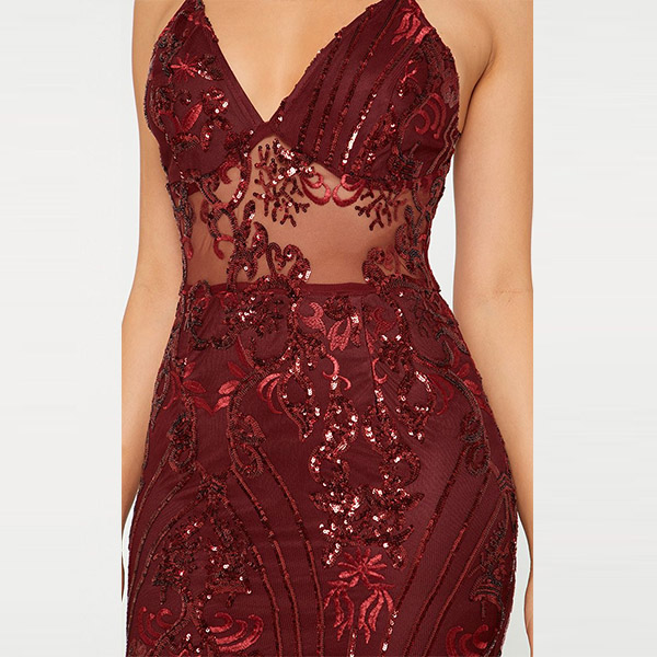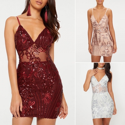 Look exceptionally stunning when you slip into this sling dress. Its alluring design details like backless,v-neck and sequin details make this piece full of sexy and flirty vibes. When you are invited to some fancy events,you have no need to worry about what to wear if you have this dress in your team.