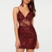 Sexy Backless V-neck Sequin Spliced Slim Fit Sling Dress