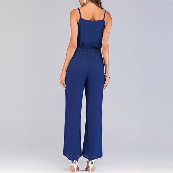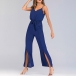 Sexy Backless V-neck Slit Hem High Waist Sling Jumpsuit