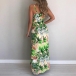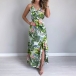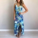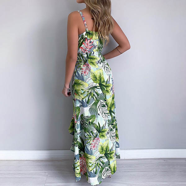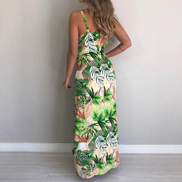 Sexy Backless V-neck Slit Hem Printed Sling Dress