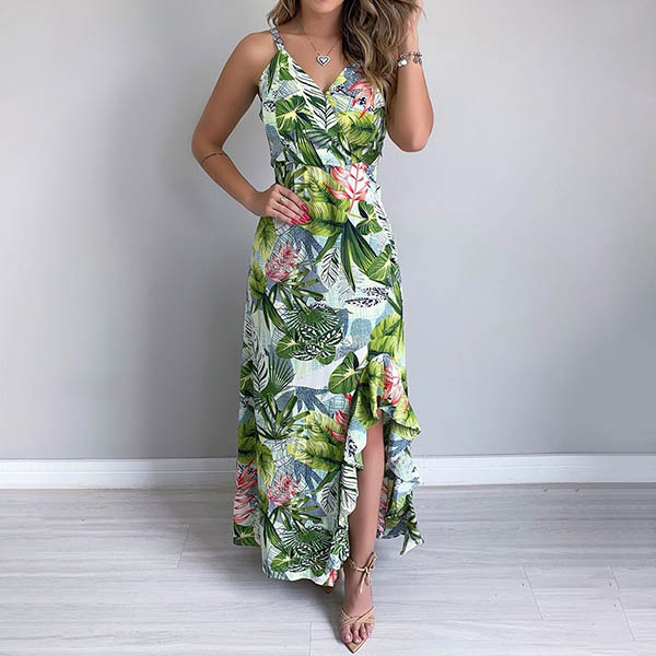 From the backyard barbecues to summer garden parties,this beautiful dress can give you a perfect transition. Its vibrant floral print details make this piece look so eye-catching,while its alluring design like backless,v-neck and slit hem design make this sling dress full of sexy and flirty vibes. You can easily arouse a splash when you don this little stunner.